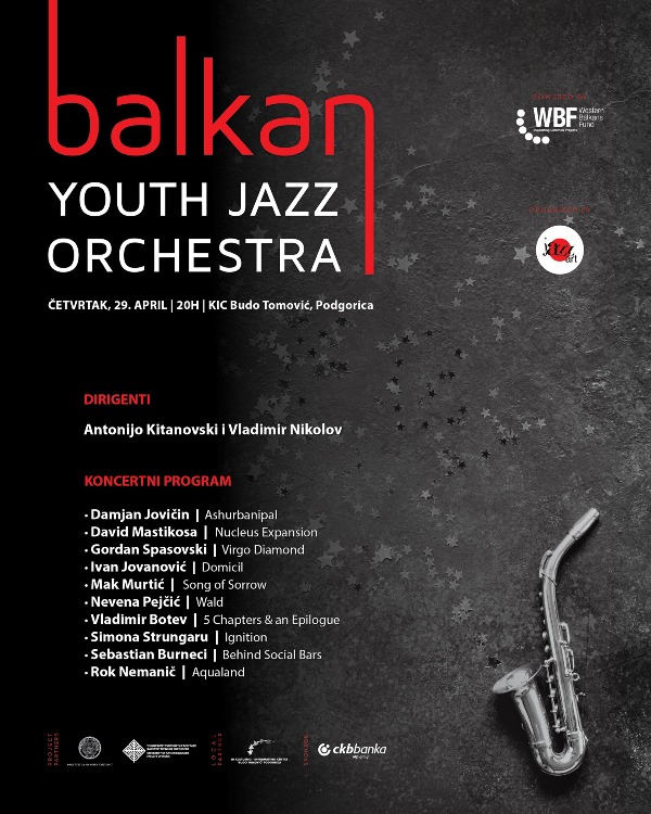 U okviru završnice manifestacije “Mjesec poštovanja džeza u Crnoj Gori” nastupiće premijerno “Balkan Youth Jazz Orchestra” u četvrtak, 29. aprila u KIC-u “Budo Tomović” u 20 sati.