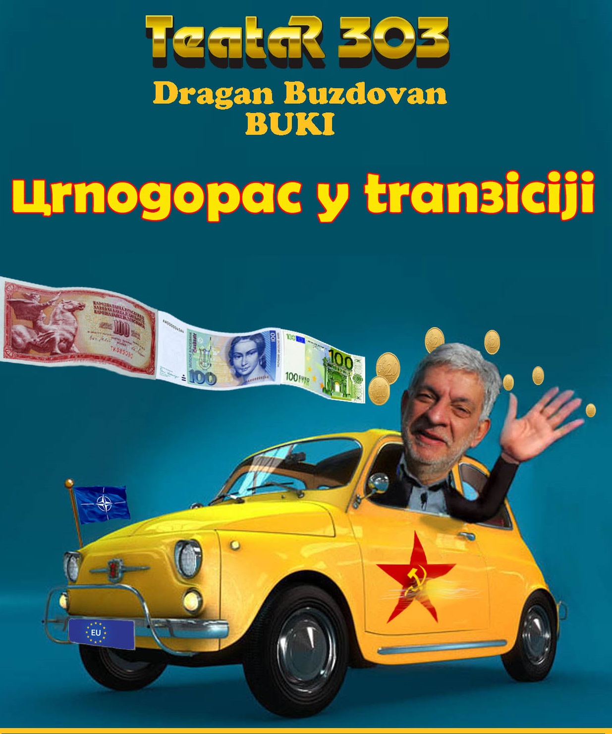 Monodrama “Crnogorac u tranziciji” je osvrt na dešavanja u poslijeratnom periodu i pogled na našu tranziciju od doba komunizma do ovog današnjeg pluralizma. Priča je ispreplijetana događajima, koji su bili značajni za našu sredinu i isti su obrađeni sa puno doze humora i satire.