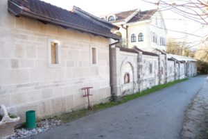 Nekadašnja jednostavna ograda oko manastira, za sad je sačuvana samo prema jugu sa metalnom kapijom, dok je na temeljima preostalog dijela stare ograde podignuta nova, koja, »natrpana« silnijem detaljima i u izmijenjenom obliku – više no odudara.