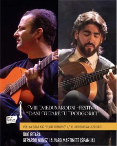 Osmi međunarodni festival “Dani gitare u Podgorici“ počeće sa koncertom velikana flamenko muzike, legendarnog španskog gitariste Herarda Nunjeza koji će nastupiti u duetu sa sjajnim mladim gitaristom Alvarom Martineteom u nedjelju, 12.novembra, na velikoj sceni Kulturno – informativnog centra “Budo Tomović”, od 20 sati.