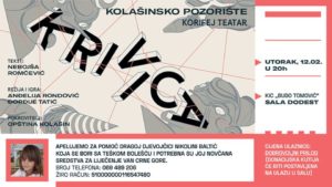Ponovo ćemo na secni DODEST organizovati izvođenje pozorišne predstave “Krivica” kolašinskog “Korifej teatra” danas, u utorak, 12.februara od 20 sati.