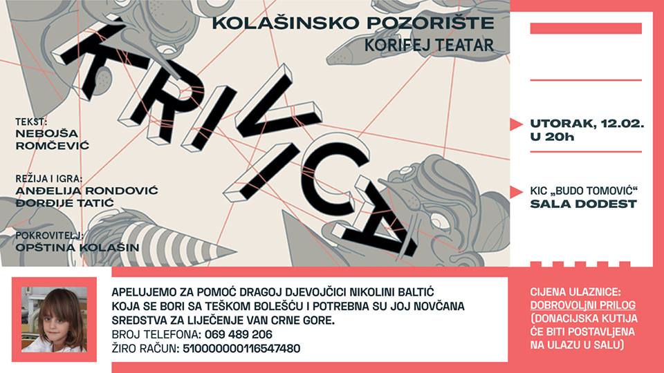 Posjetioci predstave će biti u mogućnosti da se priključe humanitarnoj akciji i da određena sredstva doniraju u okviru donatorske kutije za oboljelu djevojčicu Nikolinu Baltić, a sredstva se mogu uplatiti i na žiro račun CKB banke 510000000116547480.