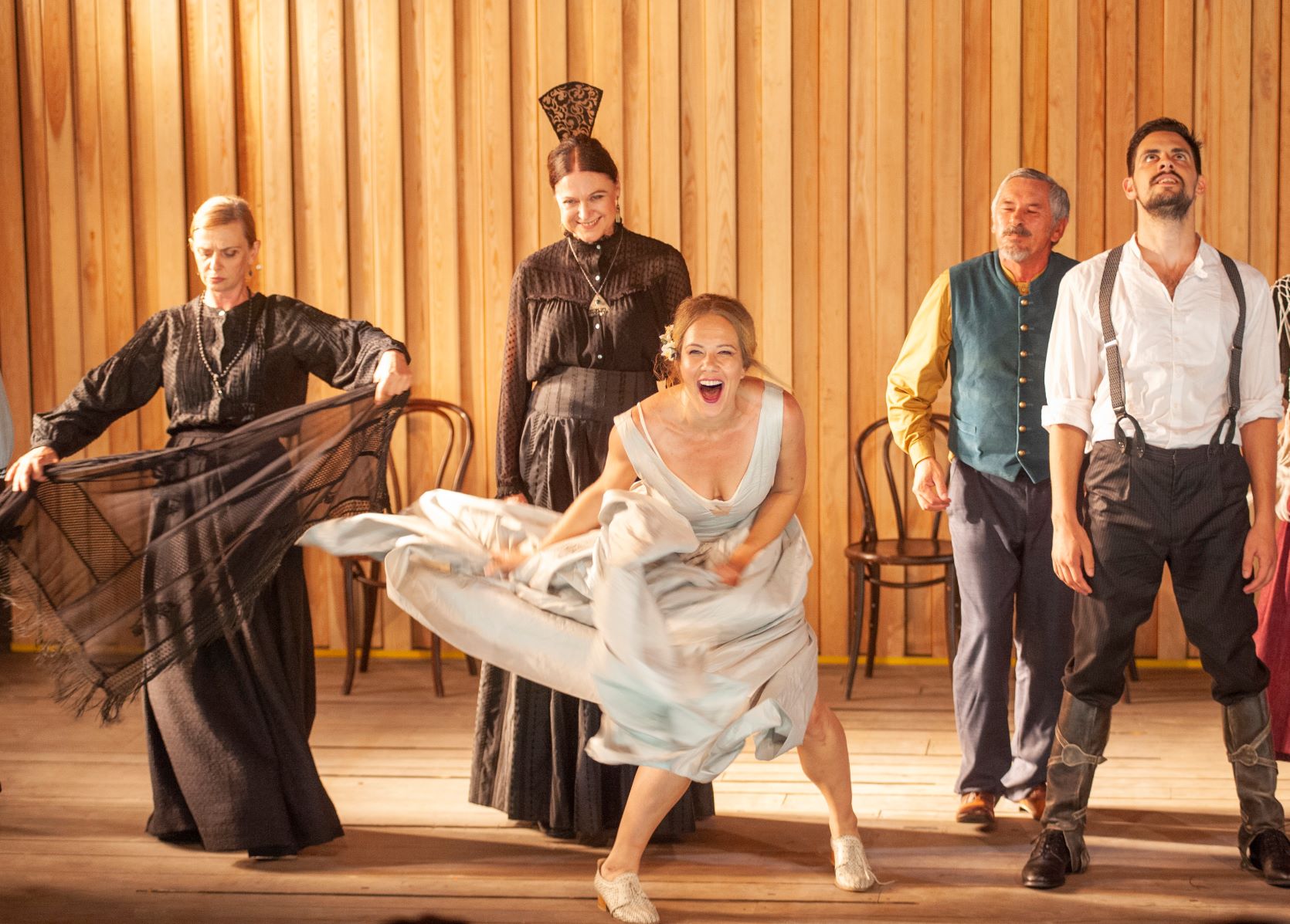 U neđelju, 11. jula, na sceni između crkava, sa početkom u 21 čas, biće izvedena repriza predstave „Krvave svadbe“ Federika Garsije Lorke, u režiji Igora Vuka Torbice. Predstava je koprodukcija JU „Grad teatar“ iz Budve i Srpskog narodnog pozorišta iz Novog Sada.