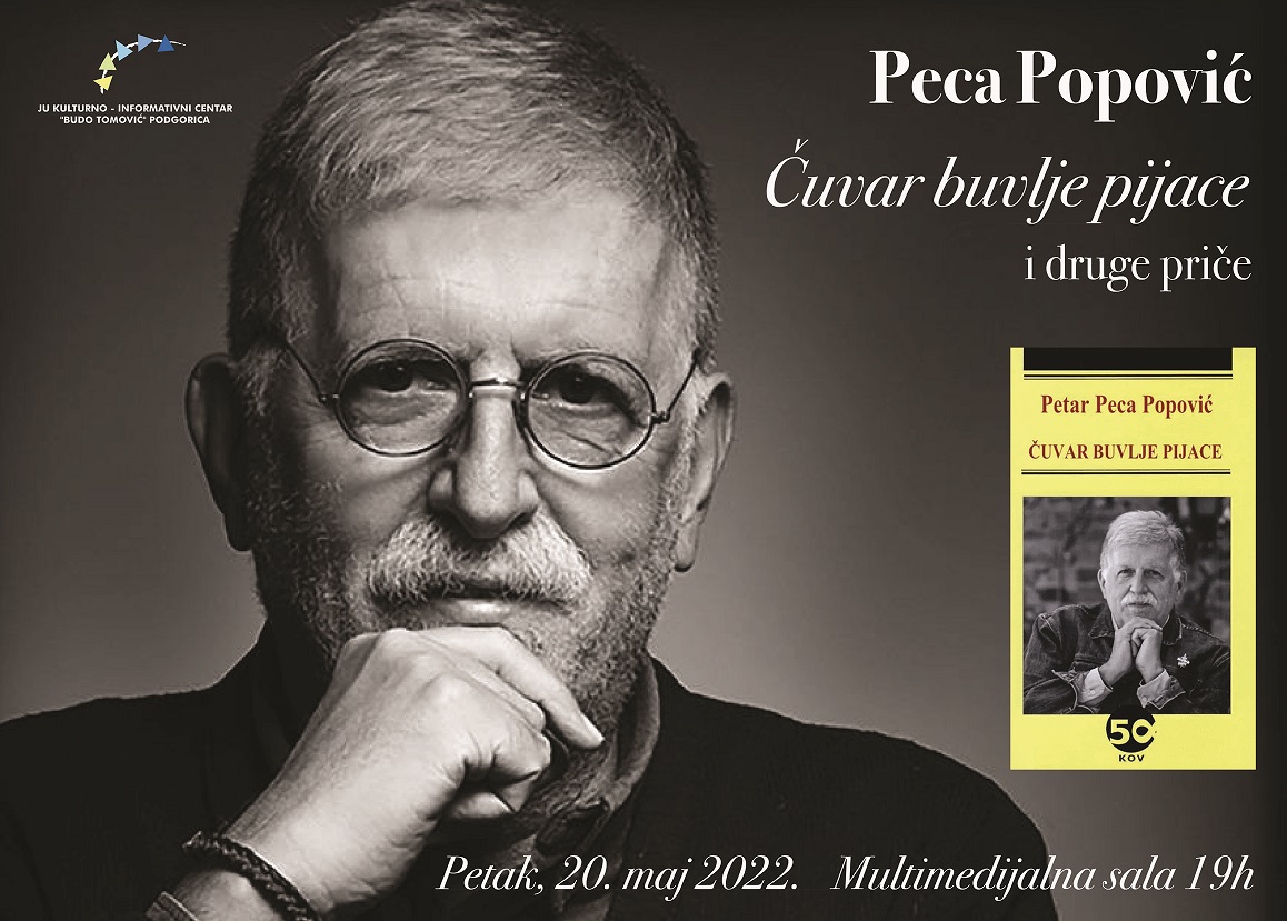 Nova knjiga “Čuvar buvlje pijace“ poznatog beogradskog muzičkog publiciste Petra Pece Popovića biće prezentovana 20. maja, a u maju publika će se upoznati i sa književnim izdanjima Slavka Mandića “U ime oca i sina” i “Politički popovi i litijaški eksperti” i Buda Simonovića “Tajna ljubav kraljice Jelene”. U KIC-u će takođe biti promovisana knjiga Veljka VeljovićaSrcem Crnoj Gori”, knjiga Nevena Milakovića “Podgorička ispovijest 2”, knjiga Marijane Zečević “Toškovićeva Sagrada familija”, a svoje književno stvaralaštvo predstaviće i Rasim Gutić.