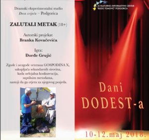 U okviru drugog izdanja manifestacije „Dani DODEST-a“ (DODEST – Dom omladine dramski eksperimentalni studio Titograd) , organizovane od strane Kulturno – informativni centar „Budo Tomović“ od 10. do 12. maja, večeras će biti izvedena predstava Branka Kovačevića “Zalutali metak” u organizaciji Dramskog eksperimentalnog studija “Đeca cvijeća” iz Podgorice.