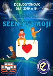 Predstava “Seen-ovi moji” Elektrotehničke škole “Vaso Aligrudić” i Ekonomske škole “Mirko Vešović” biće izvedena u utorak, 26.novembra, u Velikoj sali KIC-a “Budo Tomović”, sa početkom u 19 sati.