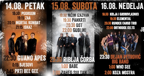 *Spisak bendova/izvođača: Kolja i grobovlasnici (Beograd, Srbija), Elemental (Zagreb, Hrvatska), Rundek Cargo Trio (Zagreb, Hrvatska/Pariz, Francuska), Orthodox Celts (Beograd, Srbija), Dejan Petrović Big Bend (Užice, Srbija), Who see (Škaljari/Pljevlja, Crna Gora), Koza Mostra (Tesaloniki, Grčka)