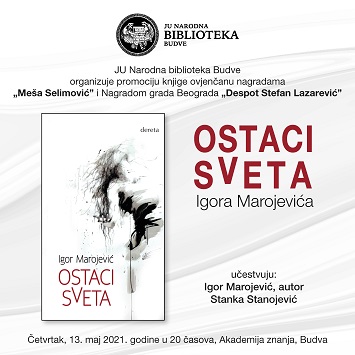 U organizaciji Narodne biblioteke Budve u četvrtak, 13. maja sa početkom u 20 časova biće promovisan roman Ostaci sveta Igora Marojevića. Roman je ovjenčan nagradama: “Meša Selimović”, Nagradom grada Beograda “Despot Stefan Lazarević”, zatim„Tronoški rodoslov“ i  nagradom Solarisa za roman godine. Promocija će biti održana na Akademiji znanja, a učestvuju autor Igor Marojević i moderatorka Stanka Stanojević.