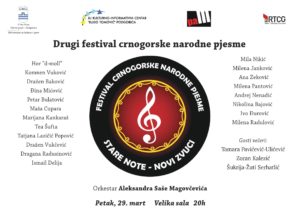 Drugi Festival crnogorske narodne pjesme ”Stare note – novi zvuci” biće održan u petak, 29. marta u Velikoj sali KIC-a “Budo Tomović”, sa početkom u 20 sati.