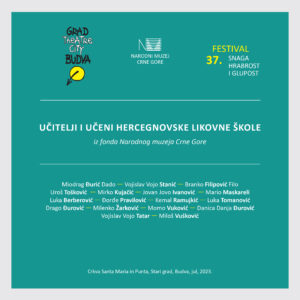 Otvaranjem izložbe „Učitelji i učeni Hercegnovske likovne škole – iz fonda Narodnog muzeja Crne Gore”, 13. jula, u crkvi „Santa Maria in Punta“, sa početkom u 21 čas, otpočeće likovni program XXXVII festivala „Grad teatar“. Izložbu priređujemo u saradnji sa Narodnim muzejom Crne Gore, a kustosi izložbe su Snežana Ivović i Miloš Marjanović, istoričari umjetnosti. Festival “Grad teatar” sa Narodnim muzejom Crne Gore održava uspješnu i višegodišnju saradnju što je tokom konferencije za novinare povodom predstavljanja programa ovogodišnjeg festivala istakao i Jakša Ćalasan, direktor te institucije.