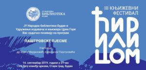 U subotu, 14. septembra na 3. Književnom festivalu Ćirilicom, na Trgu između crkava od 21 čas biće upriličeno veče pod nazivom „Paštrovske pjesme“. Riječ je o drugoj knjizi Paštrovskih pjesama sa CD-om, a na promociji će govoriti: dr Zlata Marjanović – etnomuzikolog, Željko Rafailović – član autohtone pjevačke grupe, Nebojša Ćulafić – producent i mr Dušan Medin.