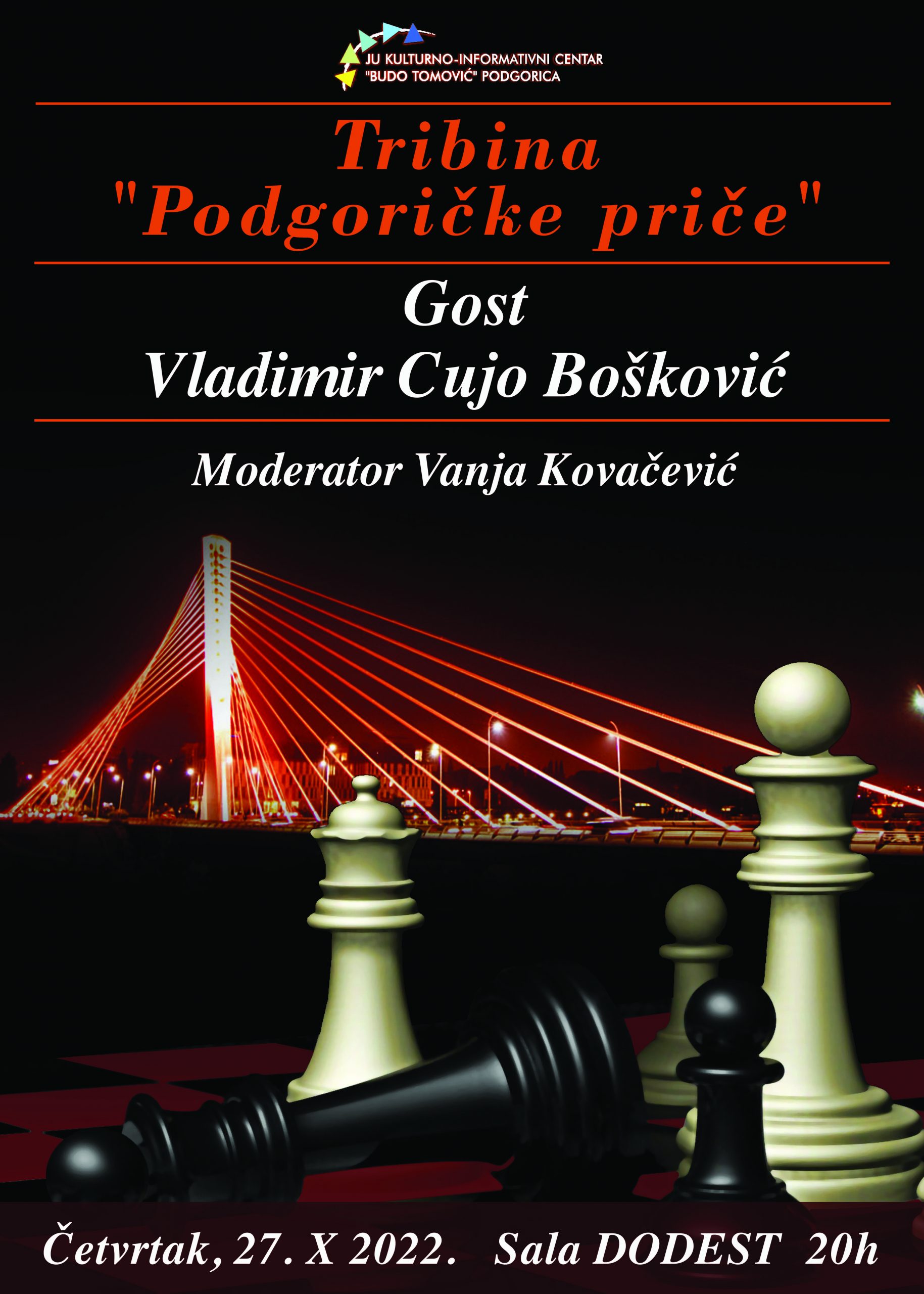 Iz tog razloga, pozivamo publiku da 27. oktobra u sali DODEST, u 20h dođe i čuje pregršt starih, a novih, priča, anegdota i legendi koje je sabrao Vladimir Cujo Bošković, svojevrsni hroničar nove i stare Podgorice, a koje će podijeliti sa gledaocima uz pomož moderatora Vanje Kovačevića.